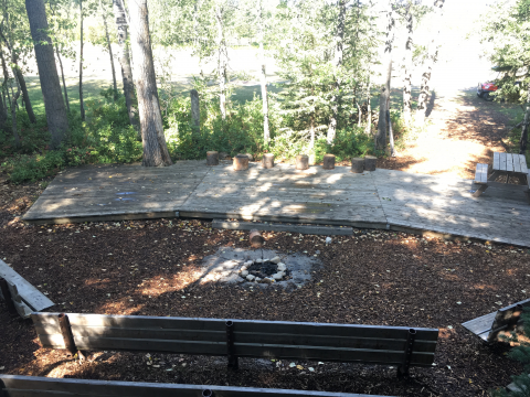 This area has fire pit, benches and a stage. Electrical plugins are provided for your sound system. Firewood is available on request.
